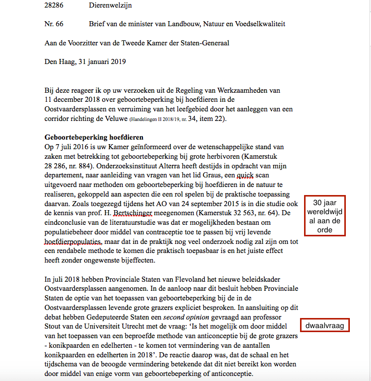 - In brief 2018 van Gedeputeerde kenmerk 2267590 : ‘ nader onderzoek en verkenning, waaronder alternatieve vormen van beheer, zoals contraceptie uitgebreid verwezen naar nader verkenning en onderzoek, verkenning waaronder alternatieve vormen van beheer.