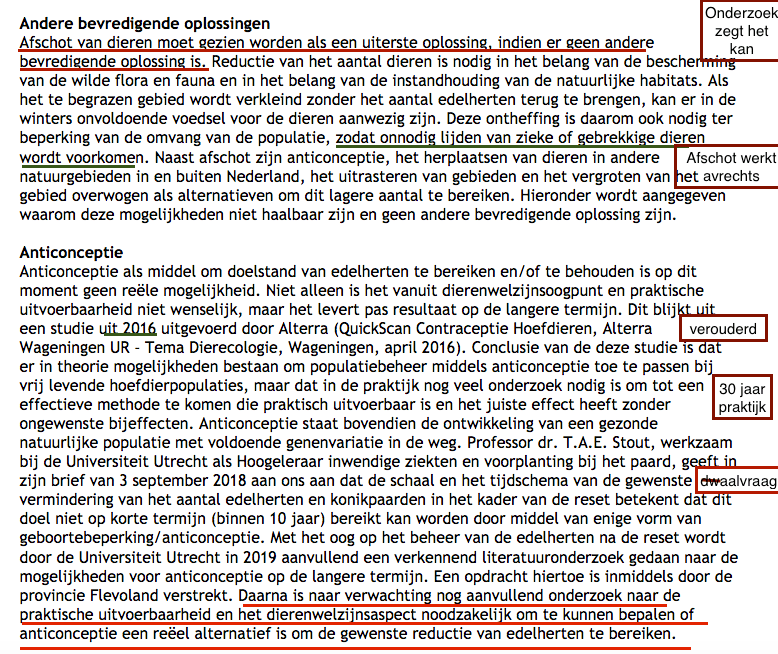 Nader onderzoek naar anticonceptie werd meerdere malen gemeld. In het proces rondom het literatuuronderzoek. Vanaf 2019 tot nu. In de 2019 ontheffing , van Geel advies ( Externe begeleidingscommissie beheer Oostvaardersplassen ) , de brief van de minister , de brief van Gedeputeerde. Naast dat ‘’ het wachten op de uitkomst van het onderzoek ‘’