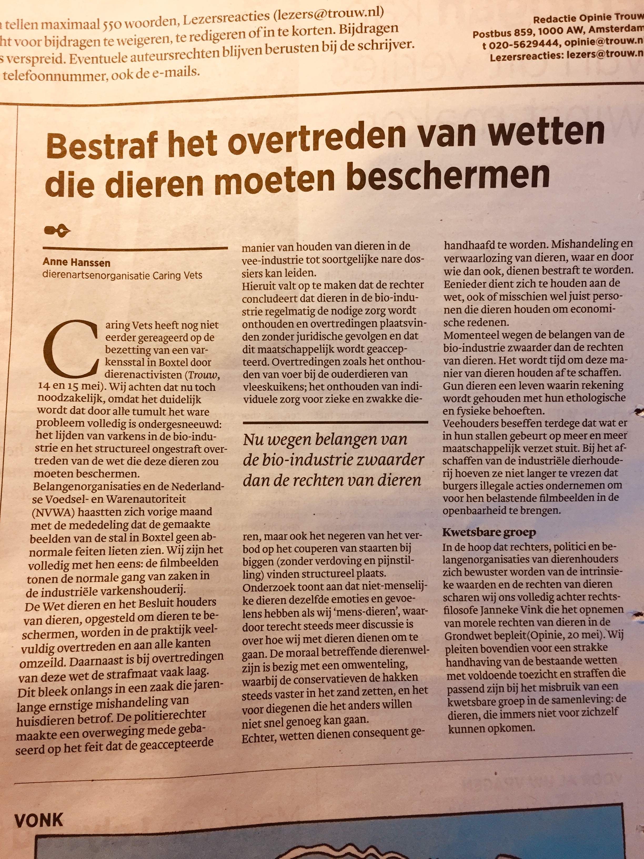 ” Caring Vets is een vereniging van dierenartsen die zich uitspreekt over structurele schendingen van dierenwelzijn en zich inzet voor een consequente professionele uitvoering van wetten en richtlijnen. Dierenartsen voor Dierenwelzijn.’‘