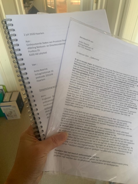 Noem dat maar toevallig. Allereerst werd het bezwaar meerdere malen genegeerd door de provincie Flevoland. Zie hoofdstuk bezwaar en de correspondentie met provincie Flevoland daarover. Totdat er een advocaat ging optreden voor Reerink, toen pas kreeg Reerink doorgang naar de hoorzitting. Nu werd in de zitting van de Raad van State 15.03.2023 door de Griffie van Provincie Flevoland gezegd dat er ‘geen herziening ‘ is ingeleverd en daarom Reerink niet ontvankelijk zou kunnen worden verklaard.
