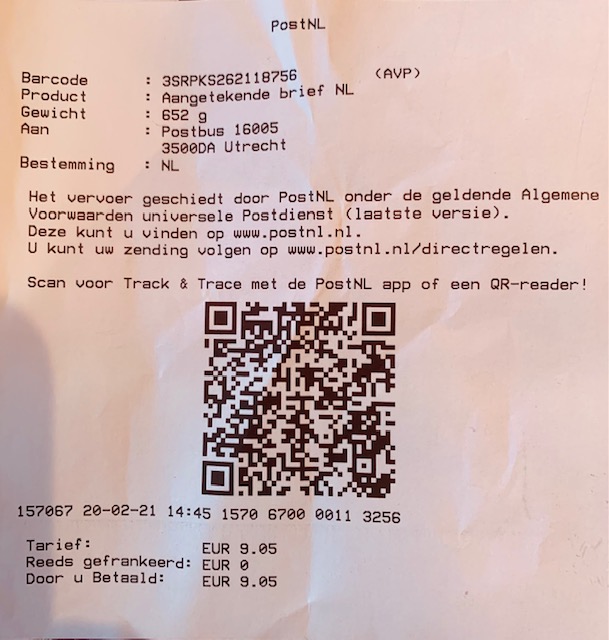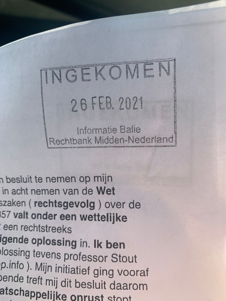 26 februari 2021 nog eens mijn beroepschrift inleveren bij de rechtbank Utrecht