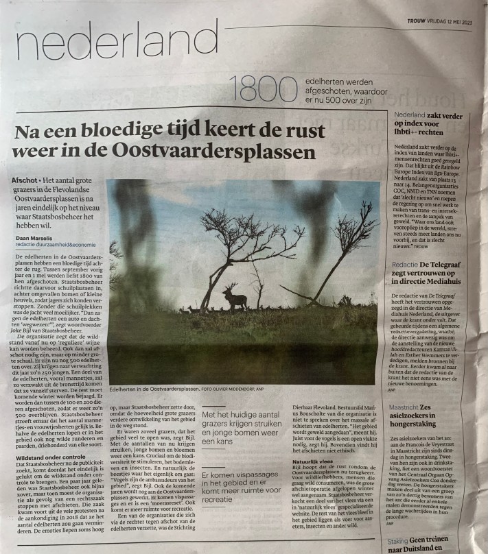 Trouw 12 mei 2023 , NOS 11 mei 2023 , Nu.nl 11 mei 2023, Omroep Flevoland 12 mei 2023