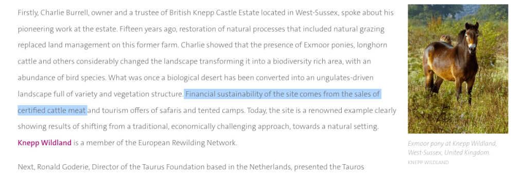 Rewilding ofwel een verkapte manier om populatie achter hekken te laten aangroeien om er vlees van te maken. De werkgroep ziet vleesverkoop als een perverse prikkel. Daar is niets natuurlijks aan. Het woord Rewilden is gekidnapt en verheven tot een newspeak. Vleesaanmaak dat verkopen als duurzaam , pretenderen dat de dieren het ecosysteem in balans houden. Het klinkt allemaal mooie en in balans maar er schuilt een horror achter voor de dieren. Waarvan 1 de dupe is kan nooit natuur zijn.