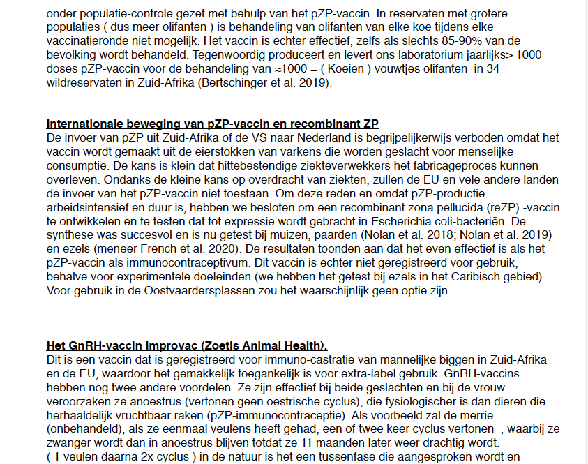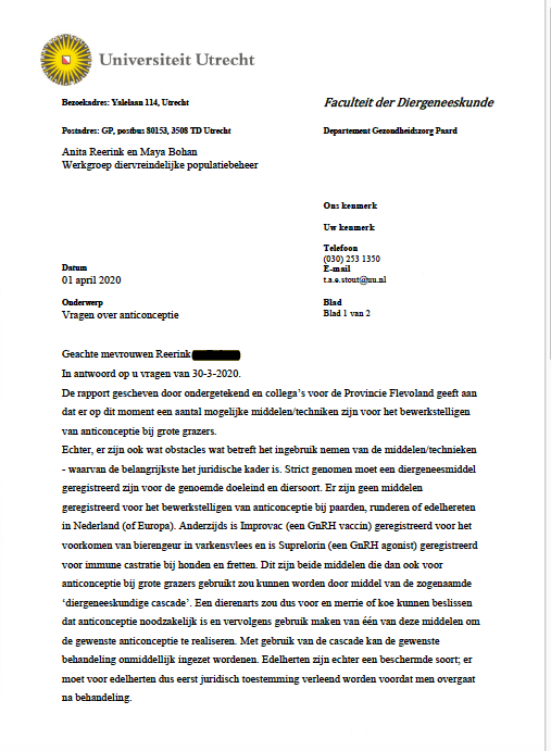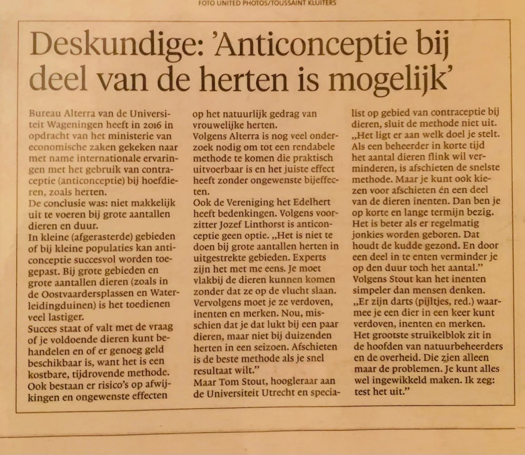 - Vetscience het tijdschrift uitgegeven door de Universiteit Utrecht is er kort over , ja anticonceptie kan gegeven worden aan wilde dieren zoals : de herten , paarden en runderen in afgesloten parken zoals de Oostvaardersplassen
