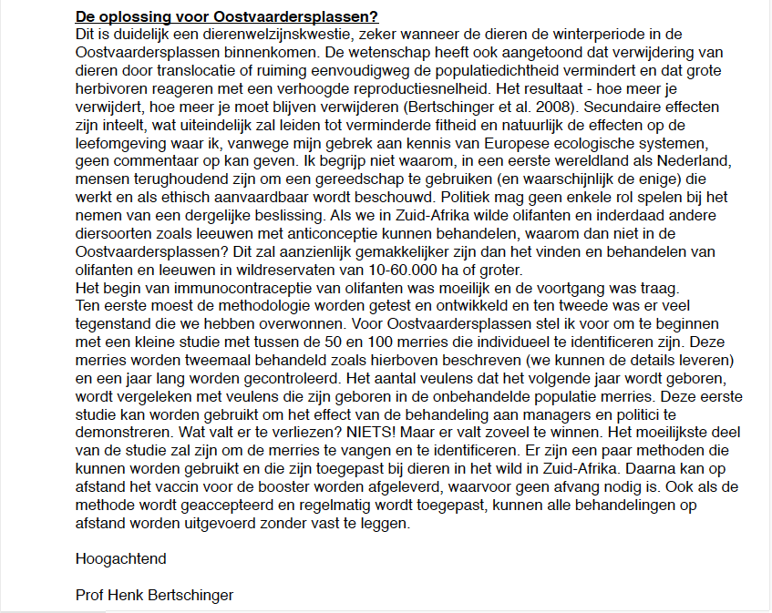 - De brief van expert professor Bertschinger uit Zuid Afrika